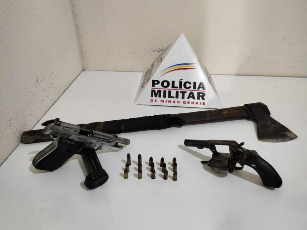 A arma de fogo foi localizada na residência de J.G., municiada e com três cartuchos picotados (falharam ao ser acionados). Na casa também foi encontrada uma pistola calibre 765 municiada com dez cartuchos intactos. J.G. assumiu a propriedade das duas armas.