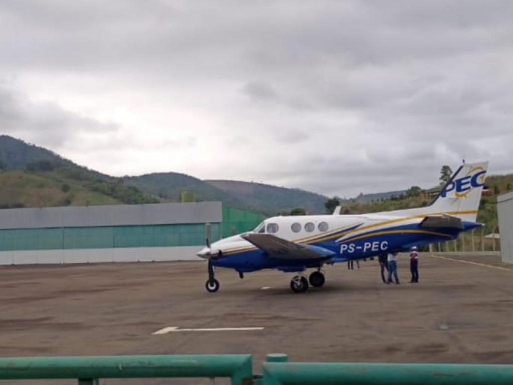Avião decola do aeroporto de Ubaporanga levando corpos, de Marília Mendonça e do tio assessor