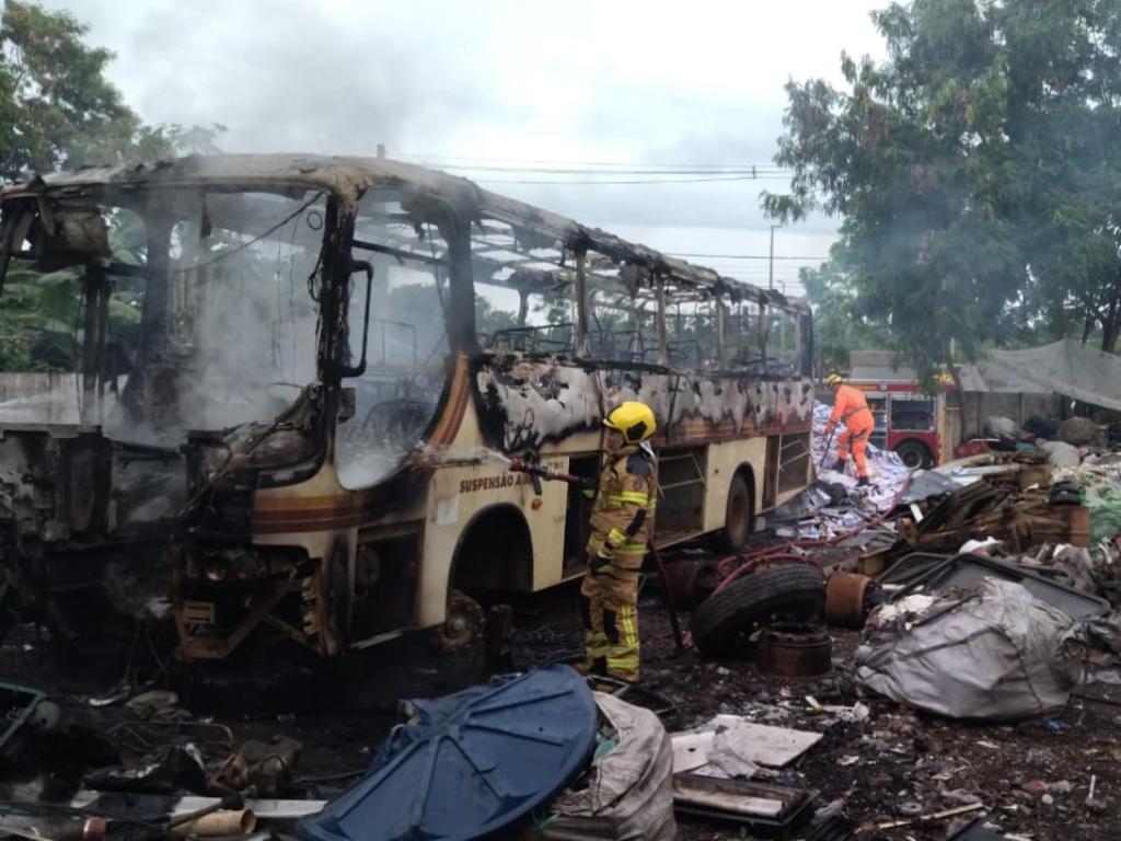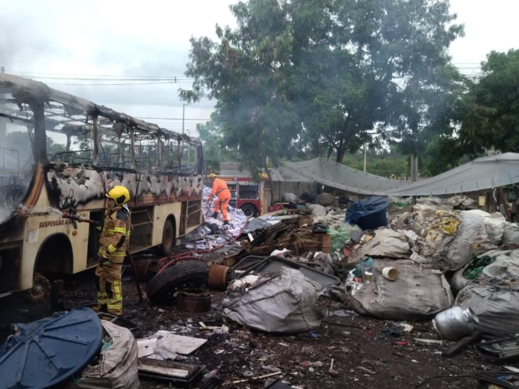 Quando as equipes do Corpo de Bombeiros Militar chegaram ao local encontraram o fogo concentrado em uma carcaça de ônibus, mas as chamas se espalhavam para os materiais recicláveis que se encontravam próximos ao veículo.