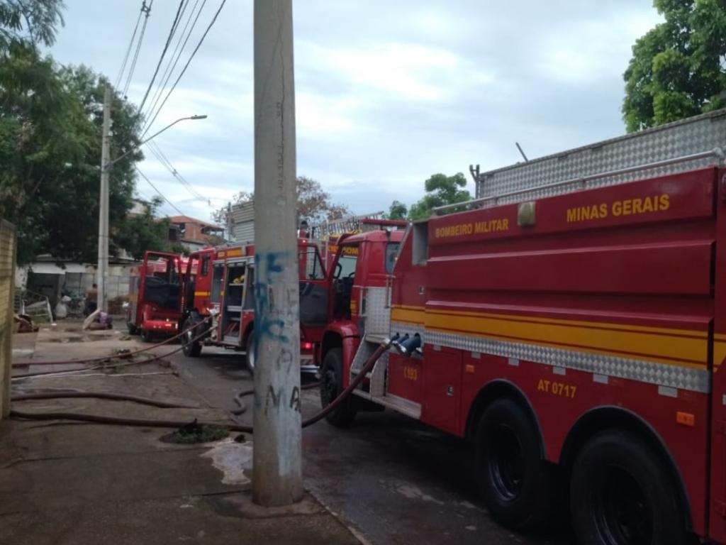 Bombeiros apagam incêndio em depósito de materiais recicláveis em Ipatinga