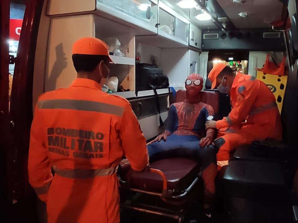 Homem-aranha é socorrido por Bombeiros em campanha