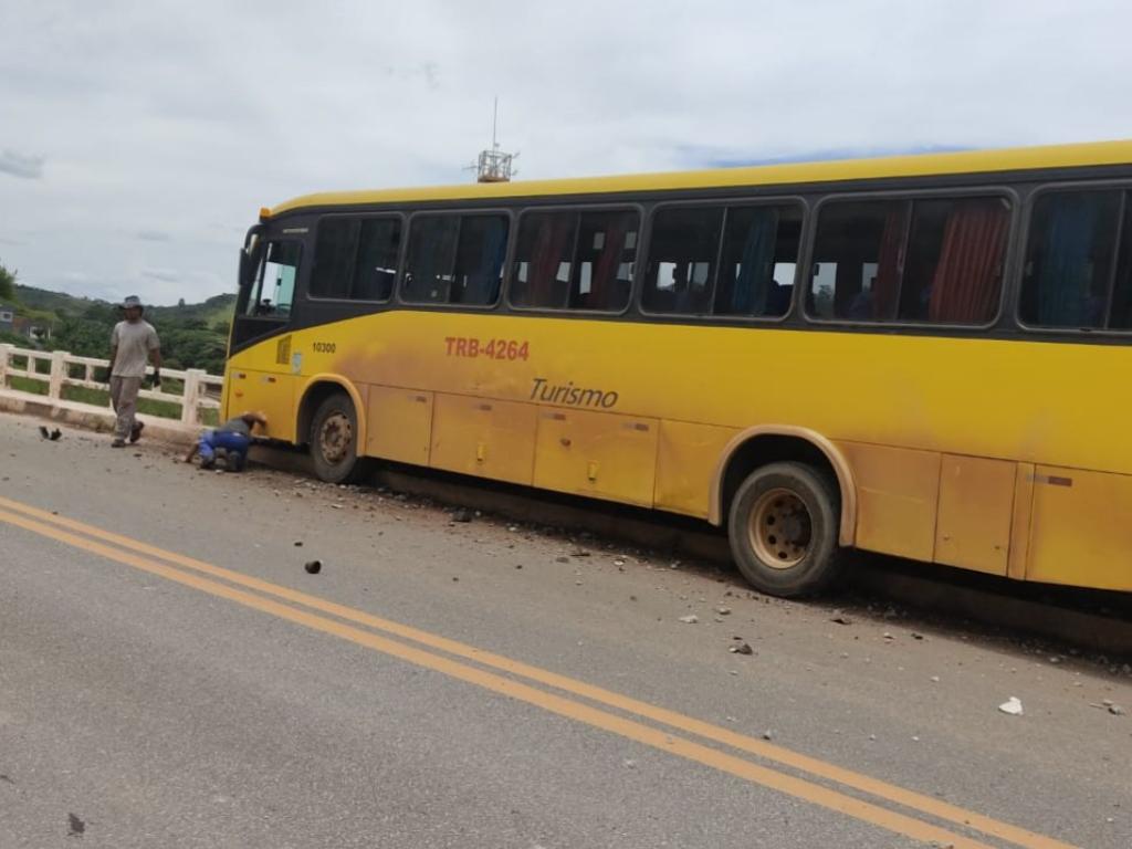 Um acidente na manhã desta quinta-feira (13), por pouco não resultou em mais uma tragédia, no município de Rio Piracicaba.Um ônibus de fretamento ficou pendurado no guarda-mão da ponte localizada nas proximidades do bairro Bicas.