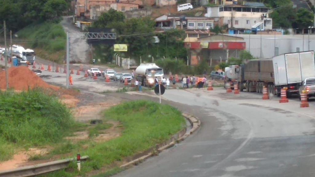 7h30 - Em Sabará/MG, BR 381 km 452, (saída para Vitória) desvio com estreitamento de pista em razão de obras(erosão), após o Posto 13, deixa o trânsito com retenção.