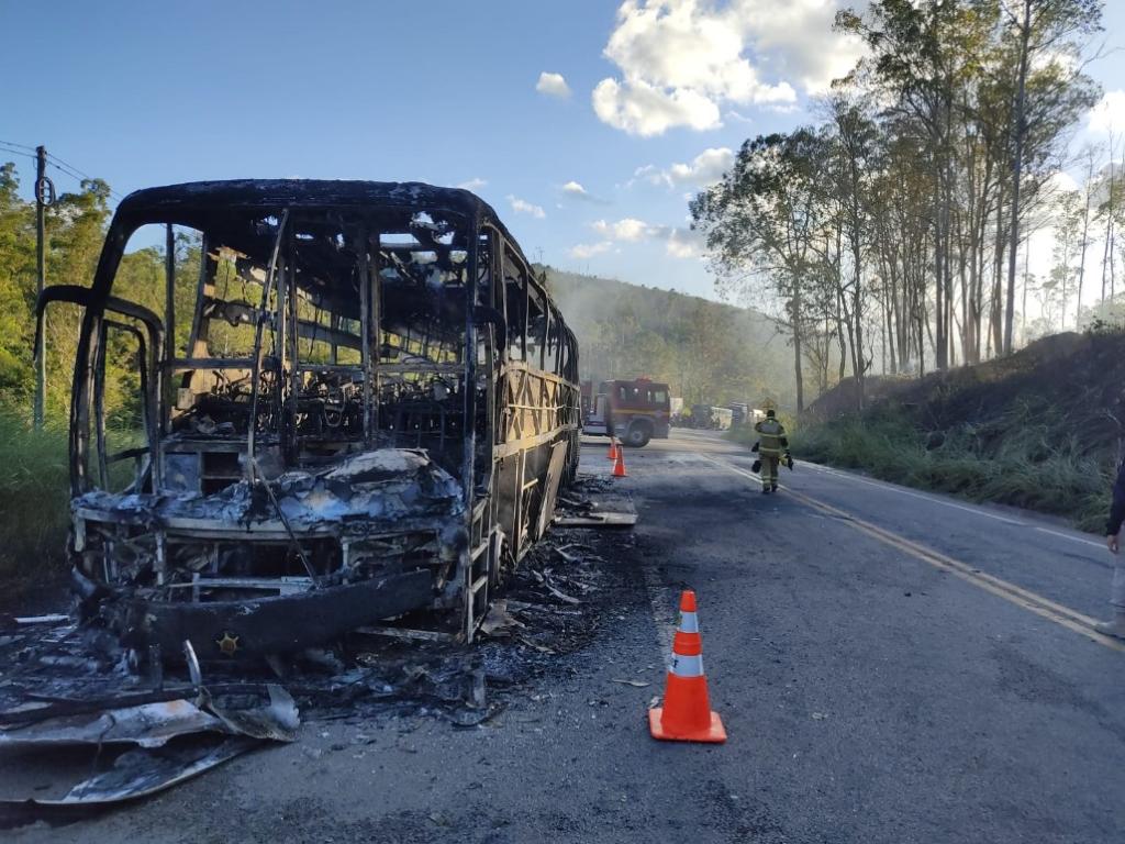 O ônibus montado sobre uma plataforma de caminhão Mercedes Benz, carroceria Marcopolo Paradiso R, ano 2009, com placa de Aracruz (ES), teve perda total, conforme o relatório do Corpo de Bombeiros Militar.