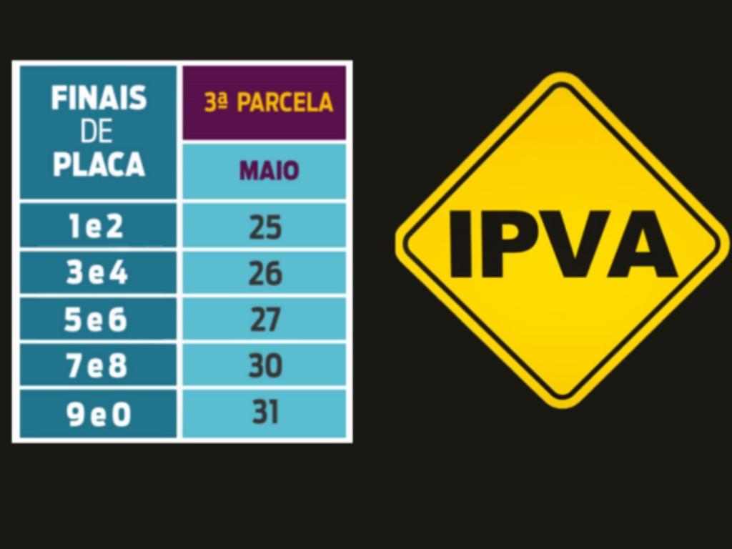 Pagamento pode ser feito diretamente nos agentes arrecadadores informando o Renavam do veículoA terceira parcela do Imposto sobre a Propriedade de Veículos Automotores (IPVA) de 2022 vence a partir desta quarta-feira (25), em Minas Gerais, se iniciando pelos finais de placa 1 e 2. A escala seguirá até o dia 31/5, sempre com dois finais de placa por dia.