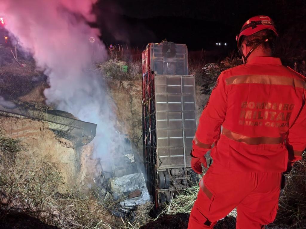 De acordo com as informações do Corpo de Bombeiros, o acionamento da equipe foi por volta das 22h. Os bombeiros foram chamados para atendimento de uma ocorrência de capotamento de uma carreta com vítima presa às ferragens e em chamas, na rodovia estadual de acesso ao Espírito Santo, cerca de 35 km de Governador Valadares.
