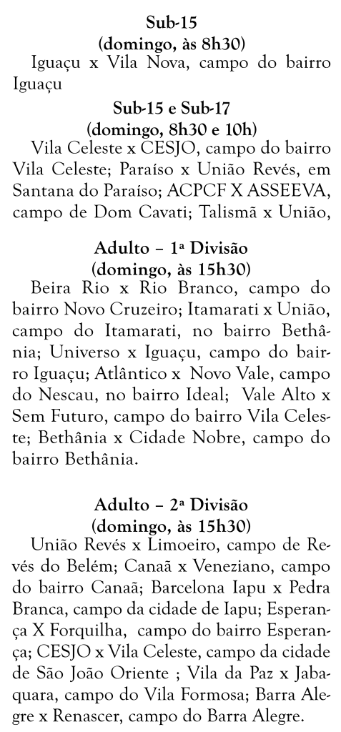 Domingo e futebol, uma dobradinha que mexe com o coração do boleiro. E neste domingo (18) a bola rola pelo Campeonato Ipatinguense de Futebol Amador, em diversos campos. Confira os jogos oficiais a serem realizados.