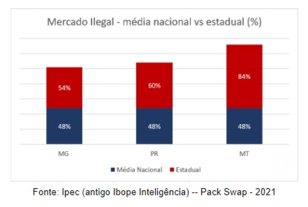 O estado é o 3º mais dominado pelo mercado ilegal no Brasil. O impacto aumentou em 4% de um ano para o outroA cada dez cigarros consumidos no estado de Minas Gerais, mais de cinco são produtos ilegais, conforme revela pesquisa do Ipec Inteligência, divulgada pelo Fórum Nacional Contra a Pirataria e a Ilegalidade (FNCP). O cigarro ilícito dominou 54% do mercado em 2021. O número mostra uma tendência de crescimento, já que em 2020 o mesmo índice era de 50%.