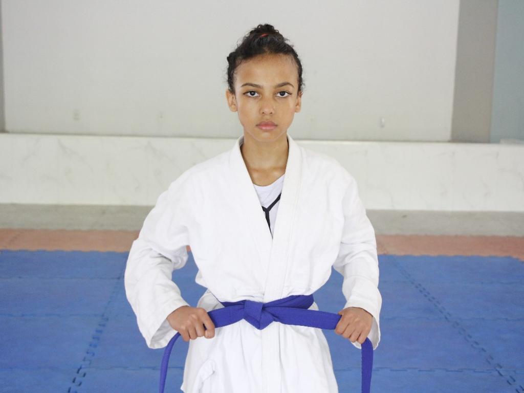 Dafni Silva Santos Quintão faz aulas de judô por meio do projeto Educar Mais, da administração municipal