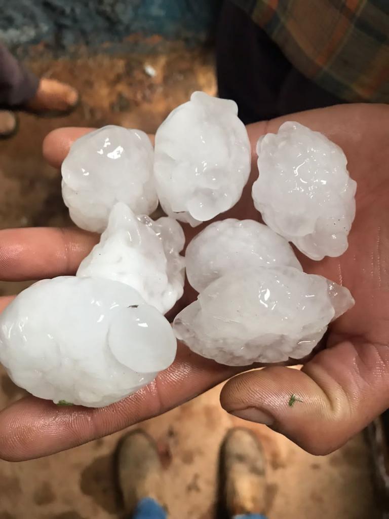 Pedras granizo deixaram rastro de destruição em várias cidades mineiras neste mês de novembro Além do café e dos grãos, o balanço da Emater-MG também mostrou que os plantios de hortaliças (908 hectares), citros (412 hectares), abacate (323 hectares) e outras frutas (233 hectares) também tiveram as áreas atingidas pelas chuvas do início do mês.