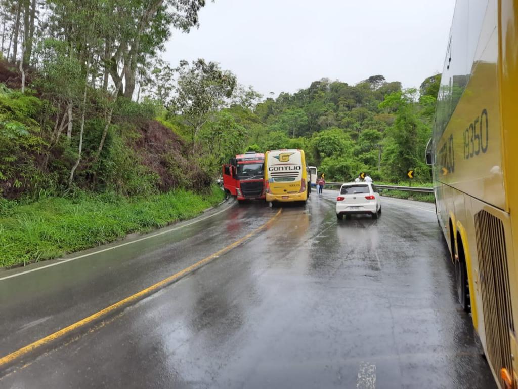 Acidente envolve ônibus e carreta na BR-262 em Domingos Martins (ES)