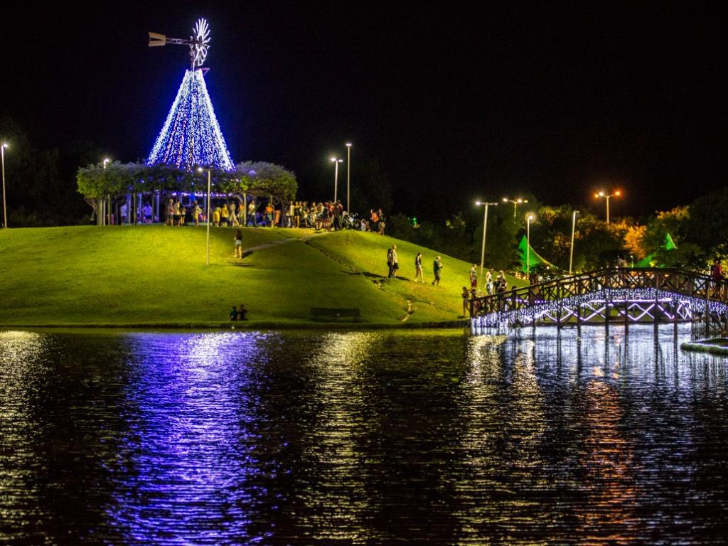 Principal cartão-postal da cidade, o Parque Ipanema volta a receber iluminação natalina