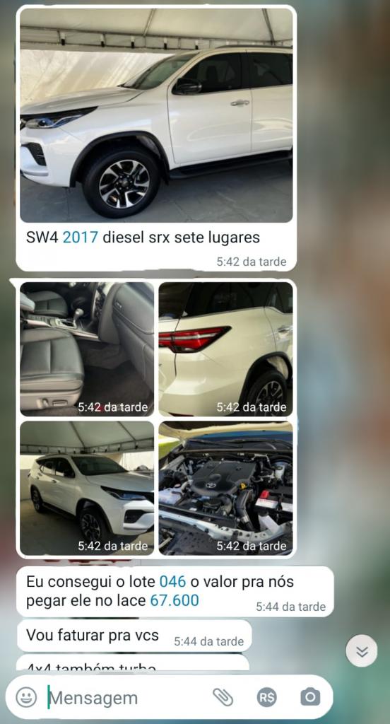 Dias depois, após conseguir vender a moto, o criminoso enviou mais uma chance imperdível” de compra para as vítimas, um Toyota Hilux Sw4 no valor de R$ 67.600. Mesmo sem nem terem recebido a motocicleta, o casal decidiu comprar o veículo. Para isso, venderam o carro que tinham e somaram R$ 20 mil de economias que estavam guardadas.