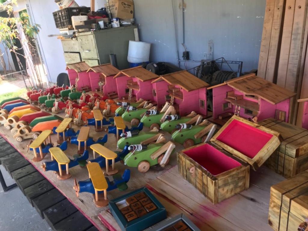 As oficinas de marcenaria instaladas nas unidades prisionais contam com a mão de obra de presos. Eles transformam materiais que seriam descartados no lixo em diversos tipos de brinquedos, como carrinhos, berços para bonecas, caminhões, trens e jogos para desenvolver o raciocínio e a capacidade de identificar cores e formas. Todo o material usado na produção é reciclável e doado, incluindo madeiras apreendidas, paletes quebrados, tintas, verniz e demais itens.