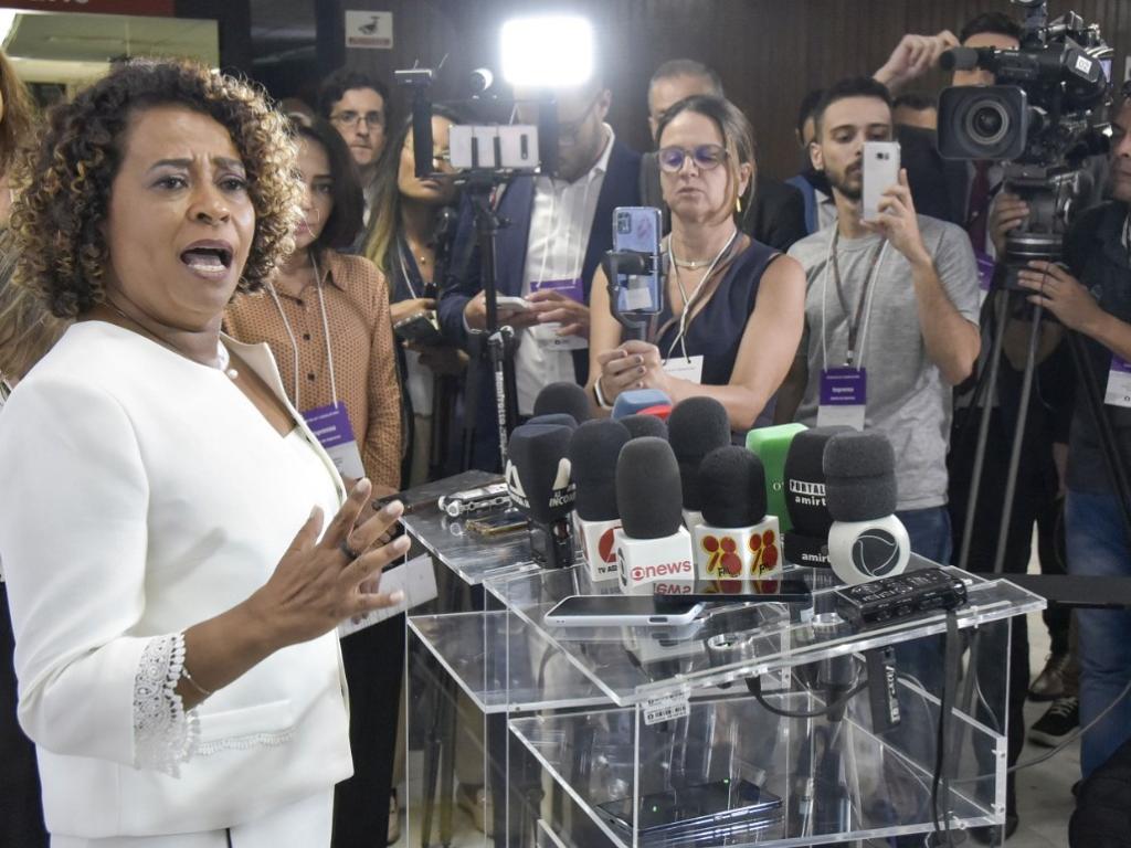 Leninha, eleita para a 1ª-vice-presidência, é a primeira mulher a ocupar um cargo na Mesa desde a 13ª Legislatura. Foto: Daniel ProtznerTadeu Martins Leite propôs ainda aos colegas parlamentares um olhar reflexivo sobre a atuação do Parlamento mineiro, destacando os avanços obtidos na última gestão. "O Parlamento é independente e atua em harmonia com os demais Poderes do Estado. O diálogo que resultou na candidatura única seguirá agora após a eleição da Mesa. Não são os homens, mas são as ideias que brigam, como nos ensinou Tancredo Neves", pontuou.
