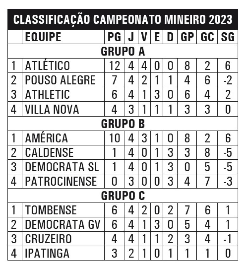 (*) Classificam-se à semifinal o primeiro de cada grupo, mais a equipe melhor segunda colocada na soma geral de pontos; do 5º ao 8º lugar na contagem geral de pontos disputarão o Troféu Inconfidência; os três piores colocados na contagem geral disputarão um triangular para definir os dois rebaixados. Chegando em até 6º lugar ao fim desta fase classificatória, o Ipatinga reúne chances de disputar a Copa do Brasil e a Série D do Brasileiro do ano que vem.