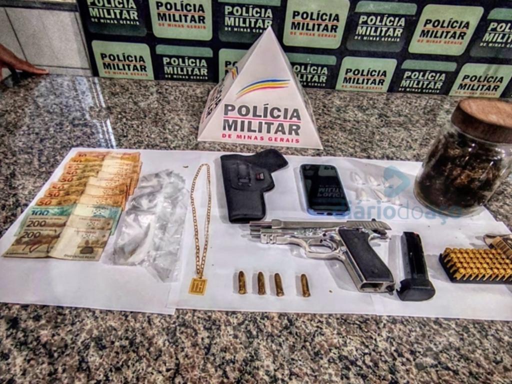 Jovem é preso com pistola, munição e drogas no Caladinho, em Fabriciano