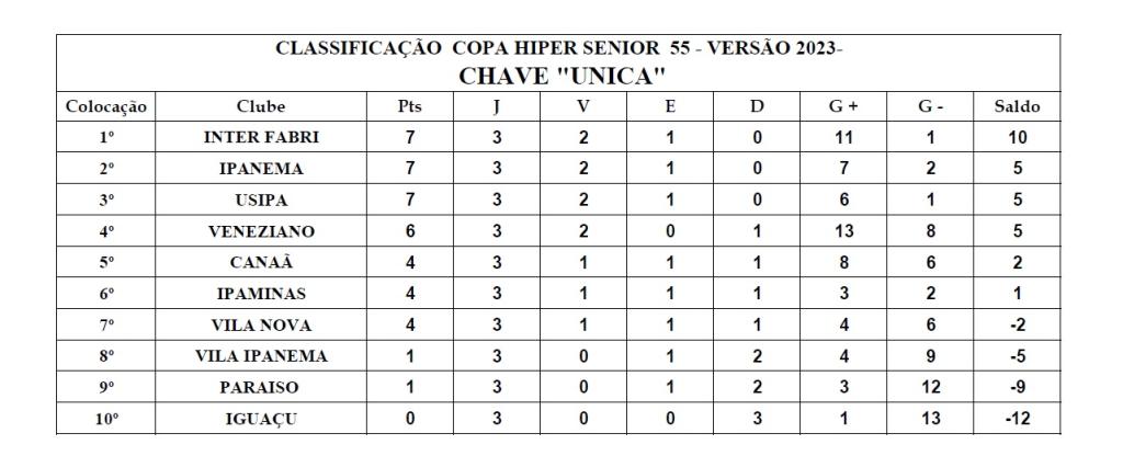 O Inter Fabri é o destaque da 7ª Copa Hiper Sênior de futebol, para atletas acima de 55 anos, organizada pela Liga de Desportos de Ipatinga (LDI) e pelo desportista Adirce Gonçalves. Na rodada do último fim de semana, a equipe fabricianense bateu sem maiores dificuldades o até então líder Veneziano, na casa do adversário, por sonoros 5 a 0.