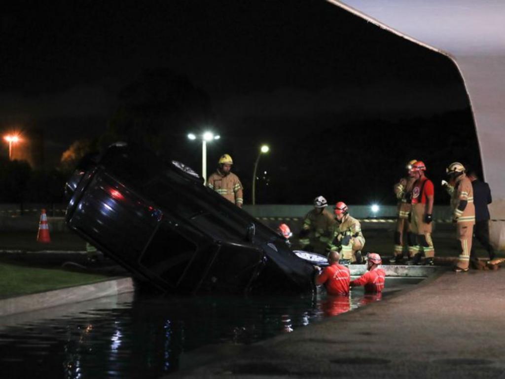 Luminosidade estava baixa e o terreno molhado, após chuvas durante toda a tarde de terça-feiraUm carro caiu no espelho d'água em frente ao Palácio do Planalto, em Brasília, no começo da noite desta terça-feira (21). O motorista do automóvel trabalha para o deputado federal Marcos Tavares (PDT/RJ) e tentava fazer uma manobra de retorno para buscar o parlamentar.