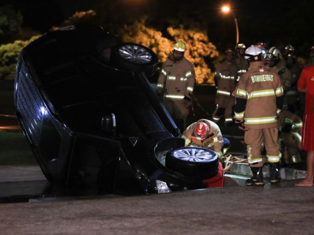 O Corpo de Bombeiros foi acionado para atender a ocorrência. O grupamento de buscas e salvamento da corporação também foi chamado para retirar o carro do local.