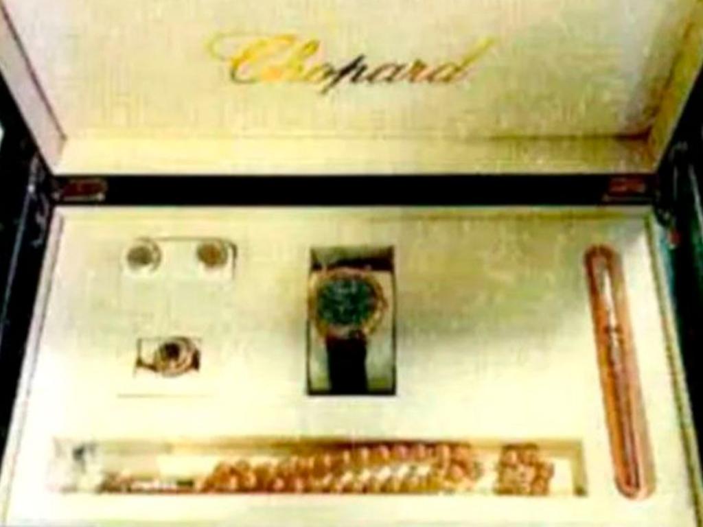 Outro presente do governo saudita, dado em 2021, um estojo com um relógio, uma caneta, abotoaduras, um anel e um tipo de rosário, da marca suíça de diamantes Chopard, avaliados em R$ 500 mil, também foram desenvolvidas hoje em uma agência da Caixa Econômica Federal, em Brasília.