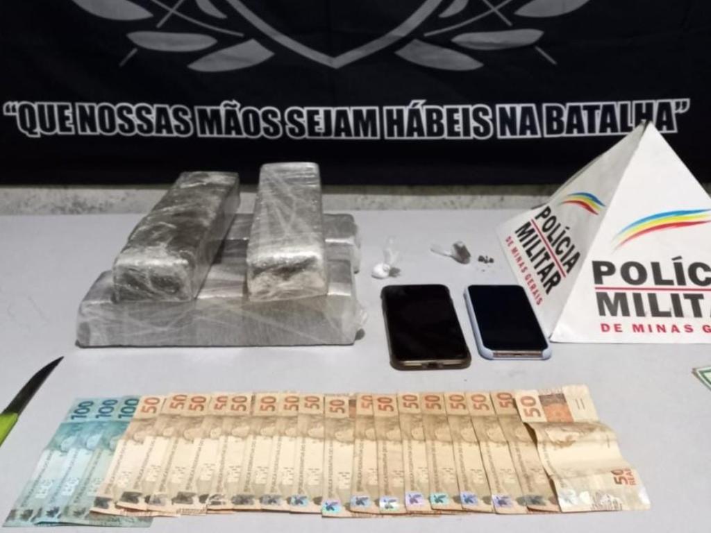 Na abordagem policial o carro estava com forte cheiro de maconha e com o condutor, R.B.S.S, foram encontrados a quantia de cinquenta reais e uma porção de pó branco, semelhante a cocaína. Durante as buscas veiculares foi localizado em cima do banco do passageiro uma sacola contendo 04 barras de substancia análoga a maconha, em uma das portas do automóvel também foi encontrada uma bucha da mesma substância e dentro da carteira do suspeito foi encontrada a quantia de R$ 1.100 em espécie.