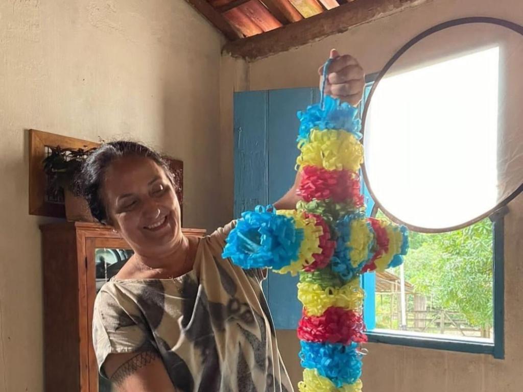 A exibição do curta-metragem Santa Cruz”, na última quarta-feira (12), no Parque Ipanema, em Ipatinga, representou várias estreias. O filme é dirigido pela artista plástica Rita Bordone, que mora na cidade há muitos anos, é estrelado pela atriz ipatinguense Luzia di Resende e conta também no elenco infantil com a atriz Catarina Torrezani, de 9 anos, que faz teatro desde os 3 anos de idade no Grupo Girança, um dos braços de formação artística do Grupo Perna de Palco. Além disso, as filmagens foram feitas no cenário rural de Tribuna e Ipaneminha, em Ipatinga.Rita Bordone teve a sua história selecionada para ser filmada pelo projeto Curta Vitória a Minas II, de iniciativa do Instituto Marlim Azul. A ficção resgata o encantamento de uma menina de 11 anos pelo ritual católico de celebração da Santa Cruz. Todo ano, próximo ao mês de maio, Dona Totinha (personagem de Luzia di Resende) enfeitava com papel de seda colorido as cruzes de madeira que seriam penduradas em portas e janelas da casa em sinal de gratidão a Maria. O gesto também entregava um pedido de proteção contra o mal, as adversidades e os infortúnios da existência. Na imaginação da menina, as cruzes subiam aos céus para encontrar a Virgem Maria.