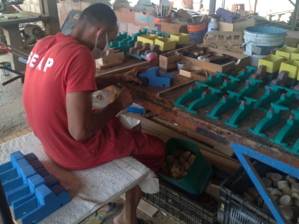 Todos os itens fabricados são destinados à doação e confeccionados em madeira, linhas de crochê e tecidosEm 2022, os detentos fabricaram um total de 8.645 brinquedos e somente no primeiro semestre deste ano já foram produzidos 6.670 itens. Toda a produção acontece em sete fábricas instaladas no interior de unidades prisionais do Estado, onde 63 custodiados trabalham para fabricar sonhos e levar alegria para a criançada.