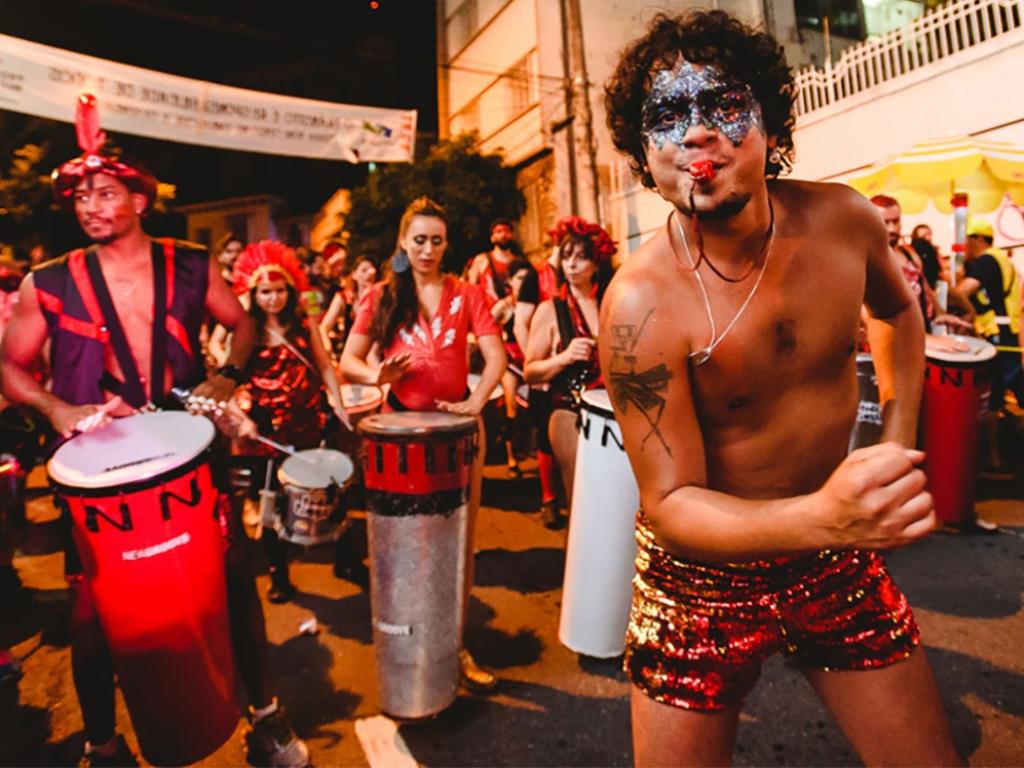 De um carnaval tacanho a uma das maiores e mais animadas festas momescas do país, o Carnaval de BH vem se transformando ao longo das últimas décadas e incorporando discursos, estilos, linguagens, públicos e afetos. Um dos tantos blocos que guarda importância na história recente da folia é o Cómo te Lhama!?, que surgiu em 2015 com a intenção de levar à rua ritmos latino-americanos e do Norte do país. O bloco uniu músicos atuantes que se debruçaram sobre a criação de arranjos e estéticas musicais. Nesse grupo estão Pedro Thiago e Chaya Vazquez, idealizadores e realizadores do projeto Ritmos da Rua”, que consiste na série de oficinas virtuais de percussão, voltado ao público de todos os níveis e idades.Além do vídeo educativo em ciclo básico, são disponibilizadas gratuitamente no canal de Ritmos da Rua” no YouTube videoaulas de sete ritmos que ganharam nomes criativos pela dupla: Arrochadeira, Carimbé, Cumbeagá, Delírio, Drumi, Guarachera e Swingaton. Com participação dos músicos Alcione Oliveira, Fernando Feijão” Monteiro e Isabela Leite, os vídeos mostram, de modo didático, o que fazem alguns instrumentos percussivos, tais como o surdo, o alfaia, o xequerê, a caixa e o timbau.