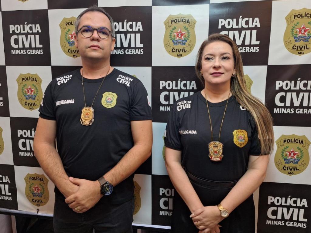 O investigador da Delegacia de Mesquita, Marcelo Martins e a delegada regional, Talita Martins Soares Soares