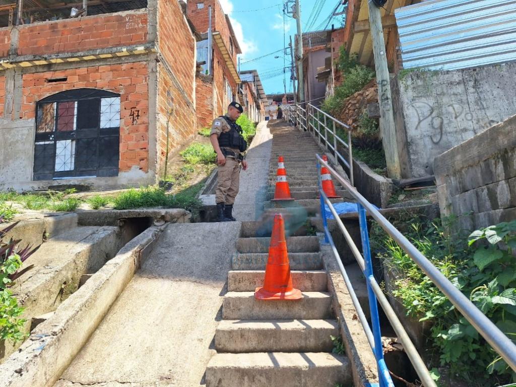 O crime foi praticado nessa escadaria da Gardênia com a rua Dália, no alto do bairro São Domingos Um homem foi assassinado a tiros no começo da tarde desta segunda-feira (4), na escadaria da rua Gardênia, esquina com a rua Dom Oscar, no alto do bairro São Domingos, em Coronel Fabriciano. Sem documentos, a identidade da vítima só foi conhecida horas depois. Trata-se de Tiago Alves Lopes, o Paulista, de 35 anos.