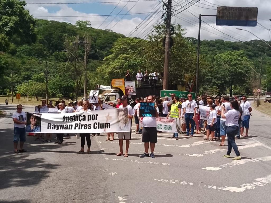 Carregando faixas e cartazes, familiares e amigos de Raynan Pires Clum fizeram uma manifestação pacífica na manhã deste sábado (16) pedindo por justiça na avenida Pedro Linhares Gomes, trecho urbano da BR-381, próximo ao Shopping Vale do Aço em Ipatinga. Raynan morreu em um acidente de trânsito ocorrido no dia 18/11, no local em que foi feito o protesto. A vítima tinha apenas 21 anos.
