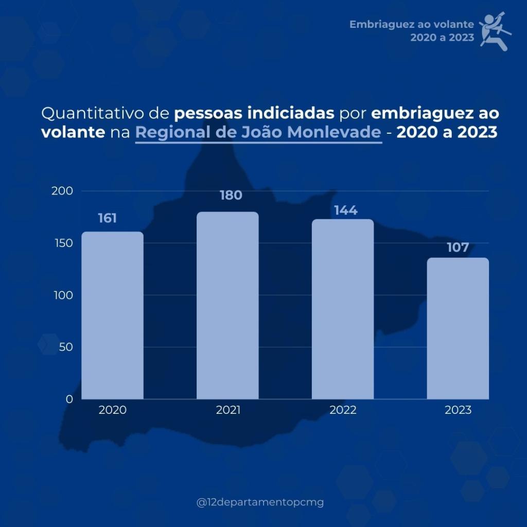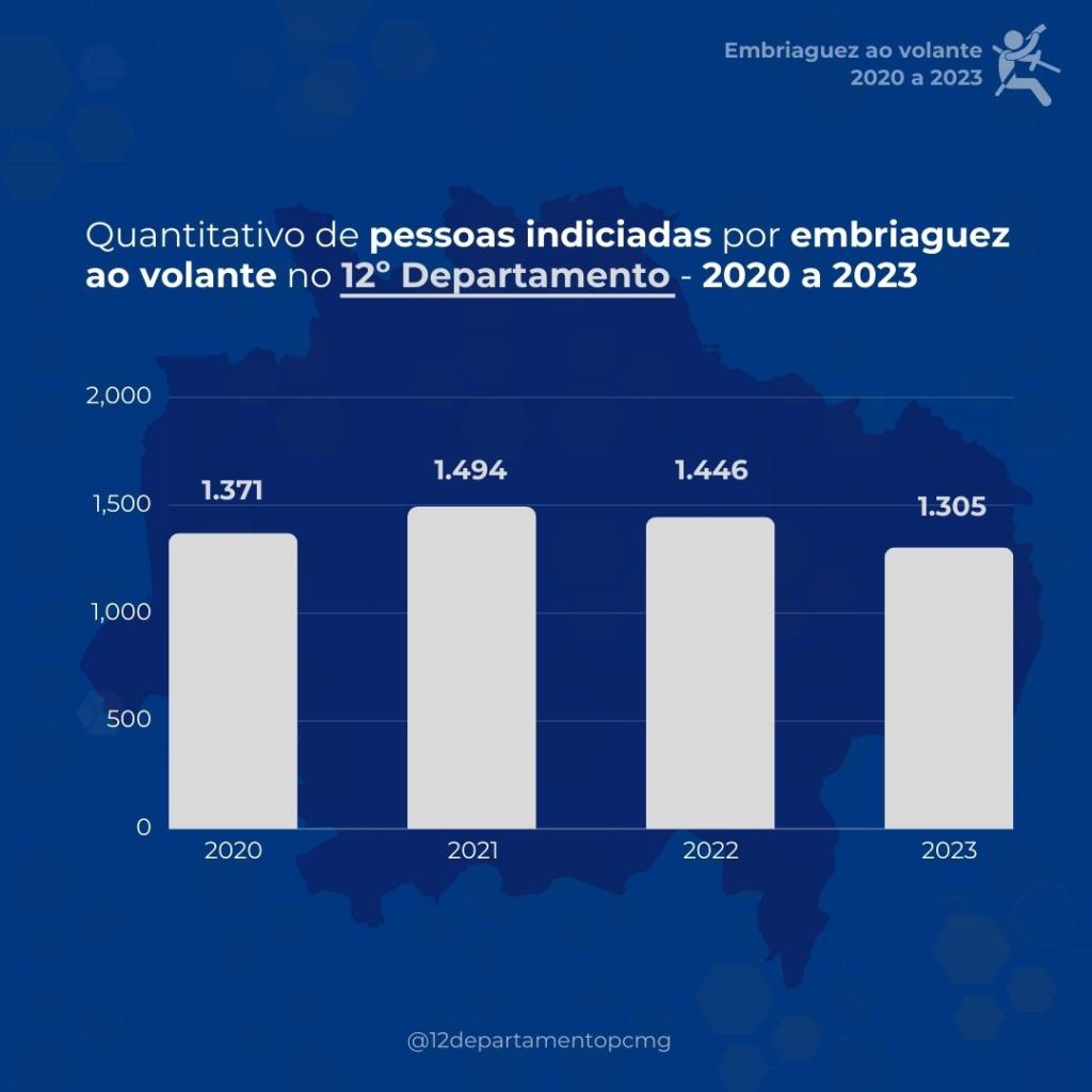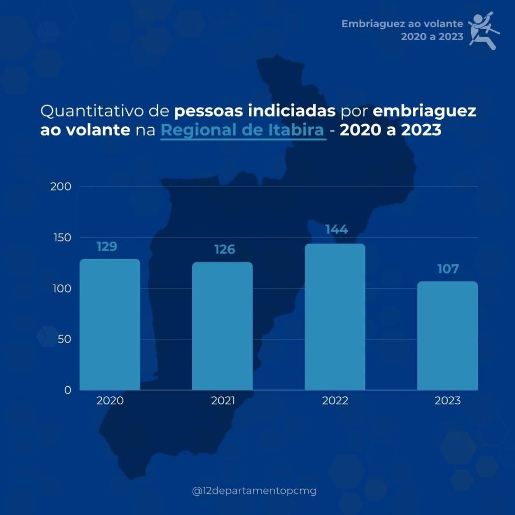 Estudos realizados pelo 12º Departamento de Polícia de Ipatinga apontam que, no período de 2020 a 2023, 5.616 pessoas foram indiciadas em toda a região pelo crime de embriaguez ao volante, abrangendo as regionais de Ipatinga, Caratinga, Itabira, João Monlevade, Ponte Nova e Manhuaçu. Nos últimos quatros anos, a Regional de Ipatinga somou 2.050 casos.Segundo o chefe do 12º Departamento, delegado Gilmaro Alves Ferreira, considerando todo o departamento, houve uma queda de quase 10%, devido à intensificação das blitz realizadas pela Polícia Militar e Rodoviária Federal, somadas às campanhas de conscientização e à rapidez na conclusão dos Inquéritos Policiais por parte da Polícia Civil.