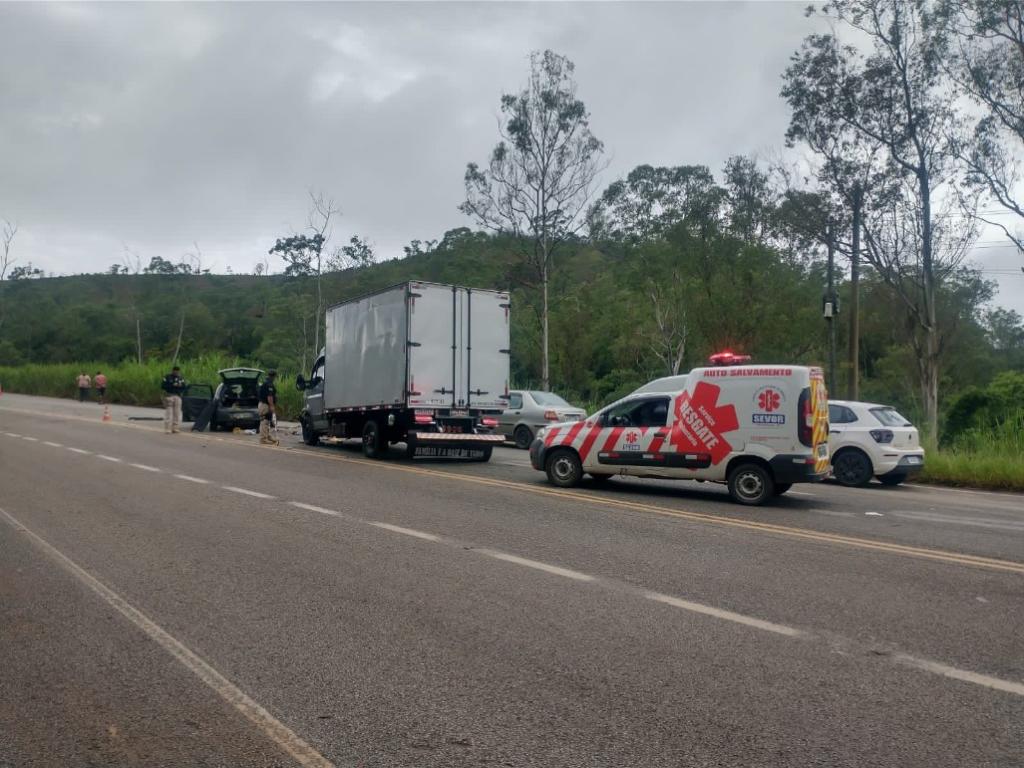 Colisão entre carro e caminhão deixa um morto e três feridos na BR-381