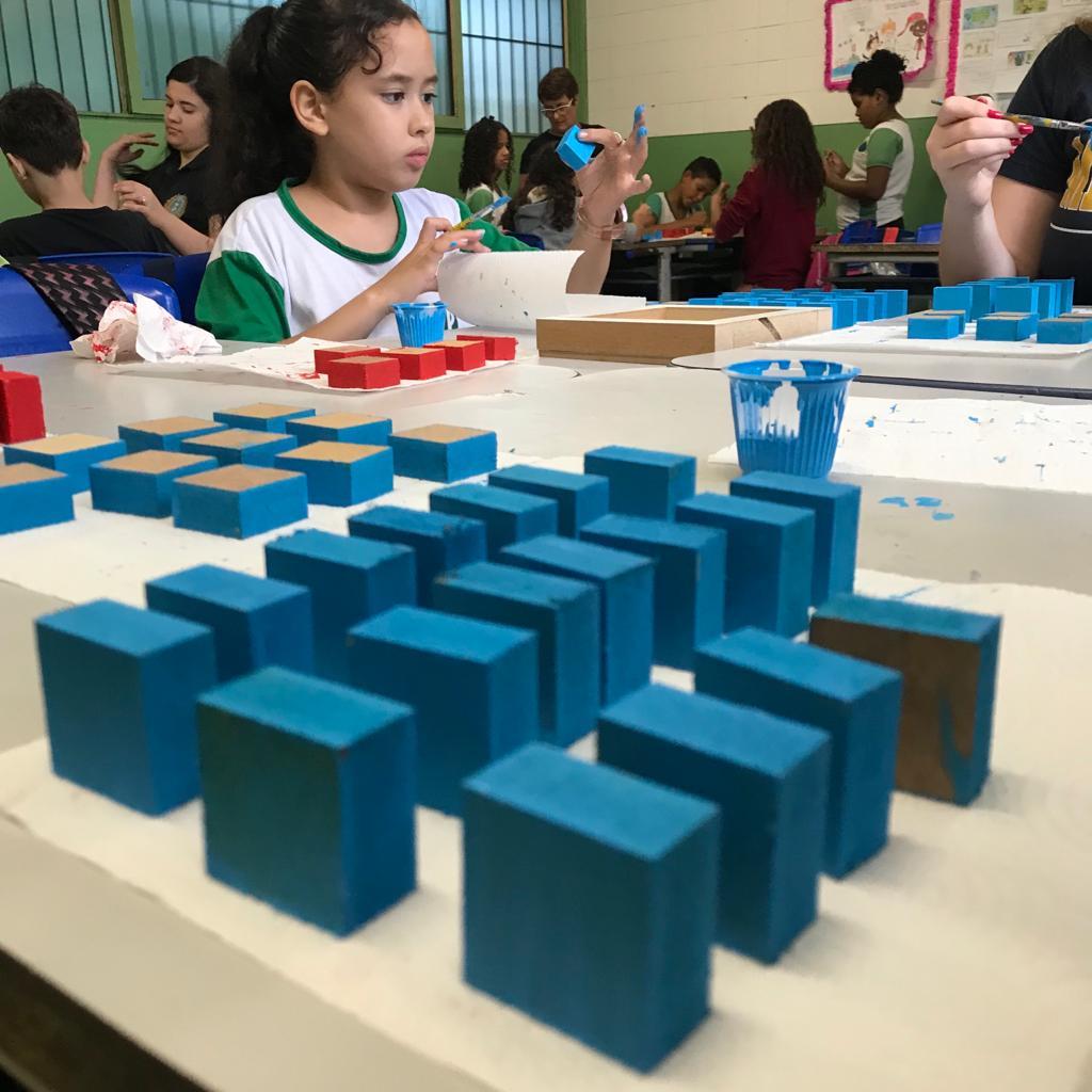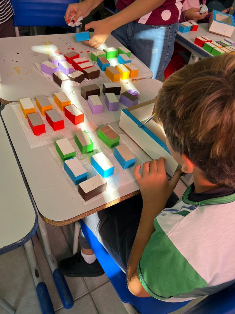 Os brinquedos de madeira foram finalizados com pinturas, em atividades dentro da escola com as crianças e apoio dos acadêmicos. Ao fim da atividade cada criança recebeu sete brinquedos. No total 420 brinquedos foram produzidos e entregues às crianças.