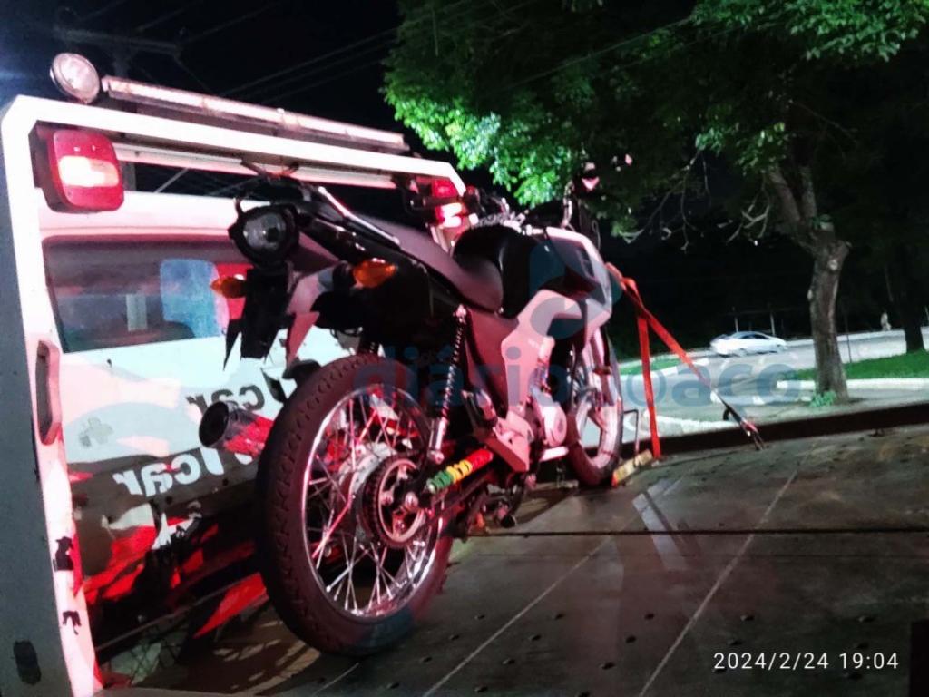 O adolescente que conduzia a Honda CG 160 caiu e foi apreendido no bairro Quitandinha, o outro escapou, mas foi identificado como um morador do bairro Ana Rita