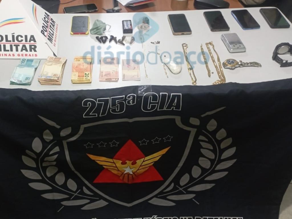 O dinheiro apreendido, mais de R$ 4 mil, além de porções de cocaína recolhidas durante a abordagem aos suspeitos