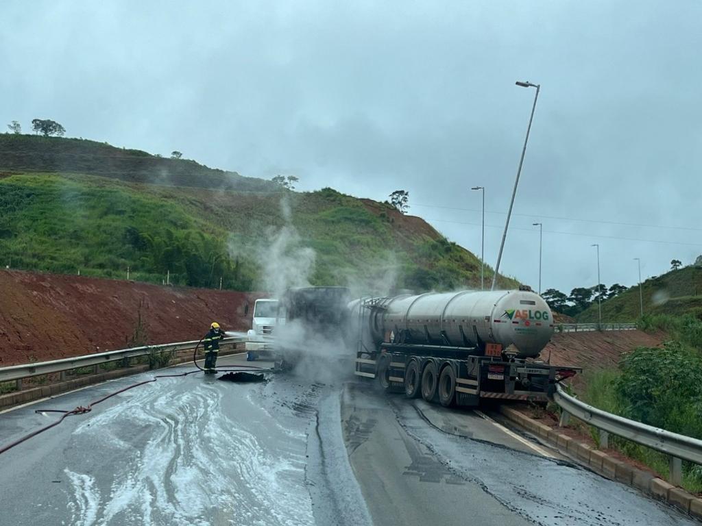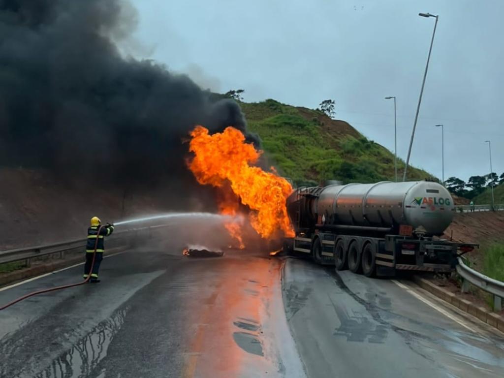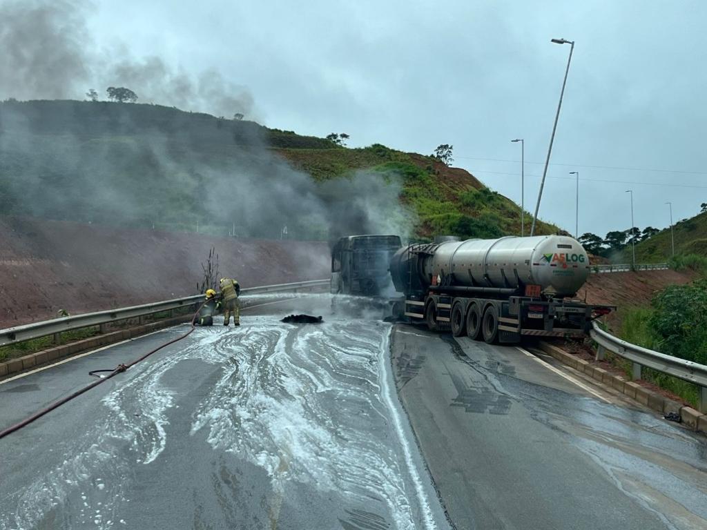 Um caminhão tanque pegou fogo na BR-381 na altura do km 382, em São Gonçalo do Rio Abaixo, sentido João Monlevade. O incêndio causou lentidão no trânsito da rodovia na manhã deste sábado (23).