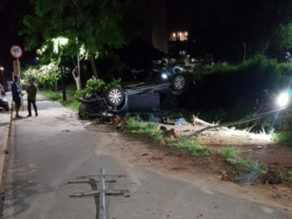 Na noite de sábado (6), a Polícia Militar foi acionada para atender a um acidente na rua Topázio, no bairro Iguaçu, em Ipatinga. Ao chegar ao local, encontrou um veículo Kia Cerato capotado e diversos danos visíveis.