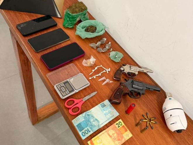 O material apreendido pela PM durante as buscas realizadas na local onde mora o suspeitoDenúncias anônimas levaram policiais militares a apreenderem uma arma de fogo e ainda porções de cocaína na rua Dália, no aglomerado do Padre Rocha, no bairro São Domingos, em Coronel Fabriciano. Foram presos um homem de 28 anos e ainda uma jovem de 20 anos. Uma adolescente de 16 anos foi apreendida por desacato na ocorrência registrada na noite de quarta-feira (17).