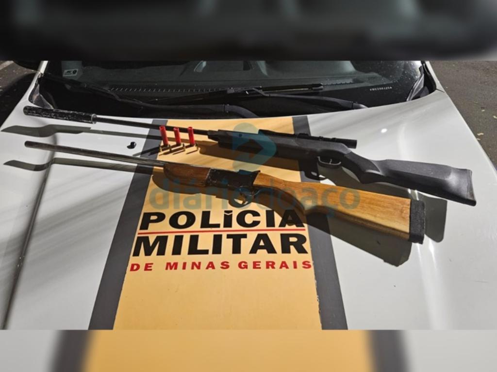 Diante dessa atitude, os policiais decidiram fazer a abordagem imediata. No interior do saco plástico, foram encontradas duas armas de fogo. Uma espingarda de calibre 32 e três cartuchos, além de outra arma de calibre 22 e mais quatro cartuchos do mesmo calibre.