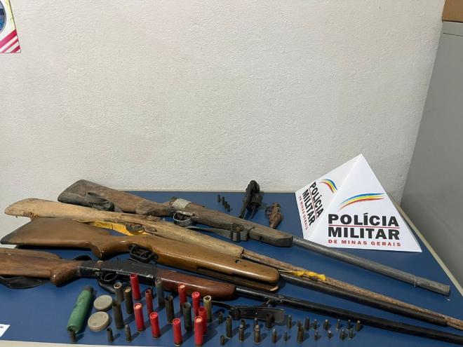 Além do revólver 32 possivelmente utilizado no crime, foi encontrado na residência do autor mais quatro espingardas e uma garrucha, diversas munições de calibres variados, além de material para recarga de cartuchos.