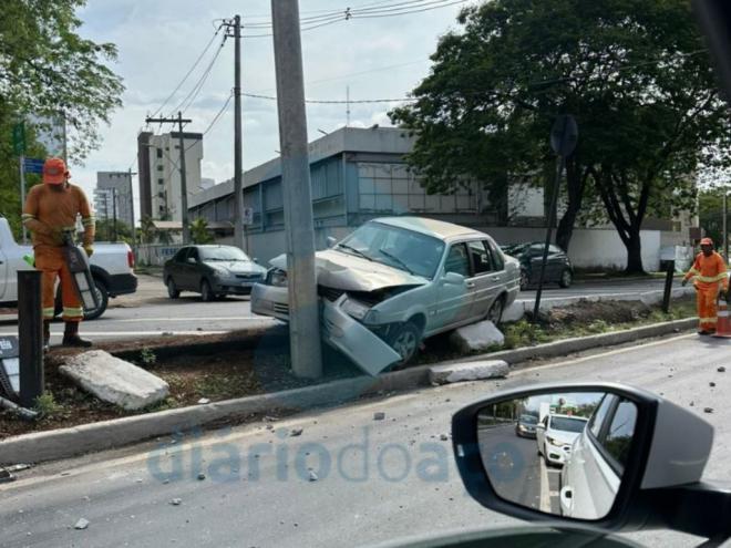 Carro bate em poste em canteiro central no Horto, em Ipatinga