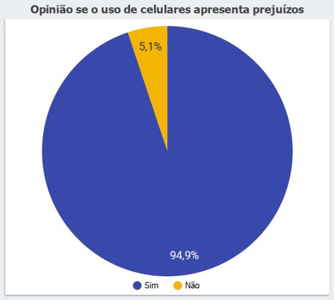 Dos mais de dois mil pesquisados, foram majoritárias as respostas dizendo que o uso de celulares no ambiente escolar causa prejuízos. A maioria respondeu sim e quando respondeu não se contradizia, porque tem perguntas mais específicas, como a que pede para apontar os principais impactos negativos e foram maciças também as respostas dizendo que o uso de celulares causa falta de atenção, é feito de forma inapropriada ou mesmo que alunos gravam os professores como forma de intimidação”, comenta.