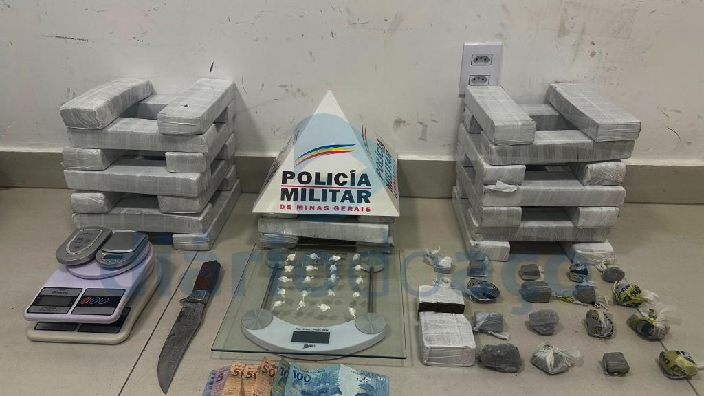 Três pessoas foram detidas, acusadas de envolvimento com o tráfico atacadista de drogas. Numa residência abandonada, de onde o trio foi flagrado saindo, foram encontradas 33 barras de maconha e vários outros objetos relacionados ao tráfico. A reportagem do Diário do Aço apurou que o fato foi registrado nos primeiros minutos desta terça-feira (24), na rua Joaquim Cardoso, bairro Ideal, em Ipatinga, onde foi abordado um veículo que jovens traficantes usavam para fazer entrega de entorpecentes.Divulgação PMMG