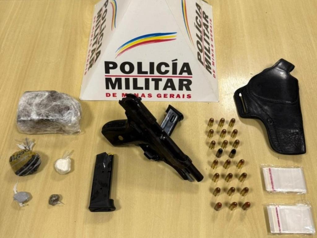 Além das drogas, foram apreendidas munição e arma de fogo em sua casa: um carregador de pistola PT 9 mm com 14 cartuchos, e uma pistola PT 58-S calibre .380 com 9 cartuchos e com a numeração ilegível. A polícia também constatou que o indivíduo tinha envolvimento com o tráfico de drogas.