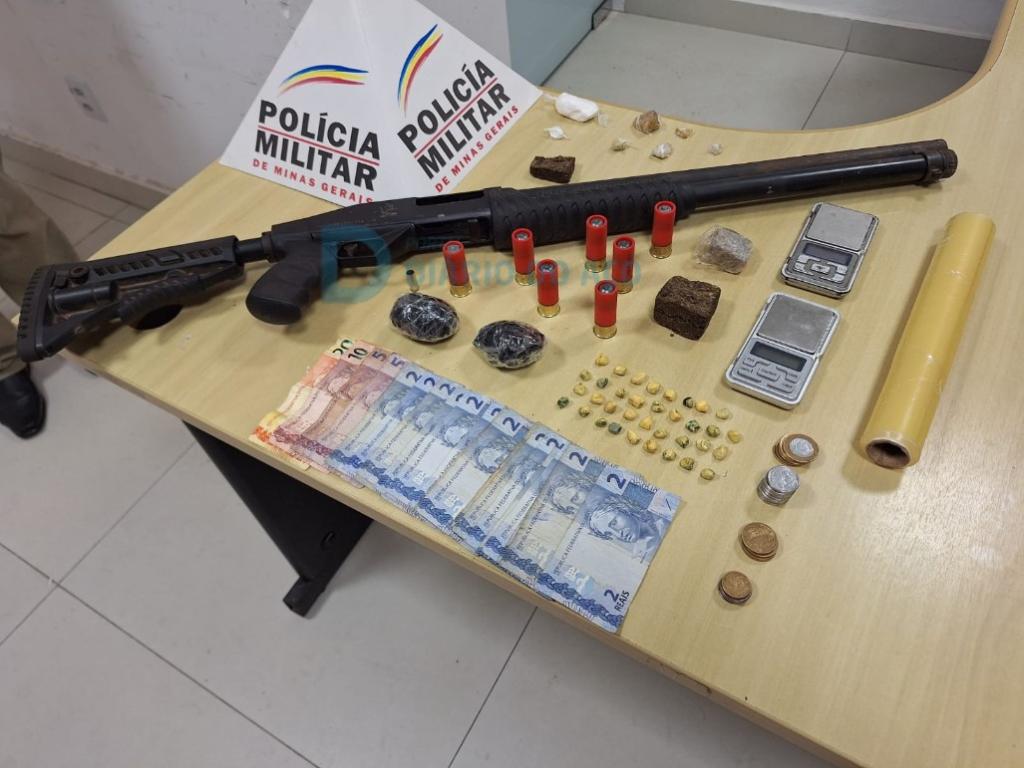 Espingarda calibre 12, drogas e dois presos em operação policial na Amazonita em Ipatinga