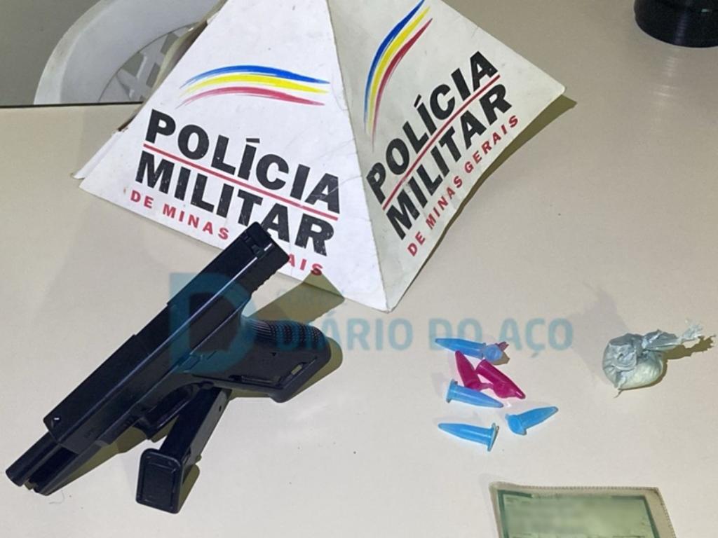 A pistola airsoft apreendida é idêntica a uma arma real e recolhida também uma porção de cocaína e pinos usados para acondicionar a drogaA ação policial foi motivada em decorrência de uma medida protetiva de urgência, como apurou o Diário do Aço com os policiais militares. Durante a abordagem inicial, o suspeito demonstrou resistência, sendo necessário algemá-lo para garantir a segurança dos policiais e assegurar o cumprimento da ordem judicial.