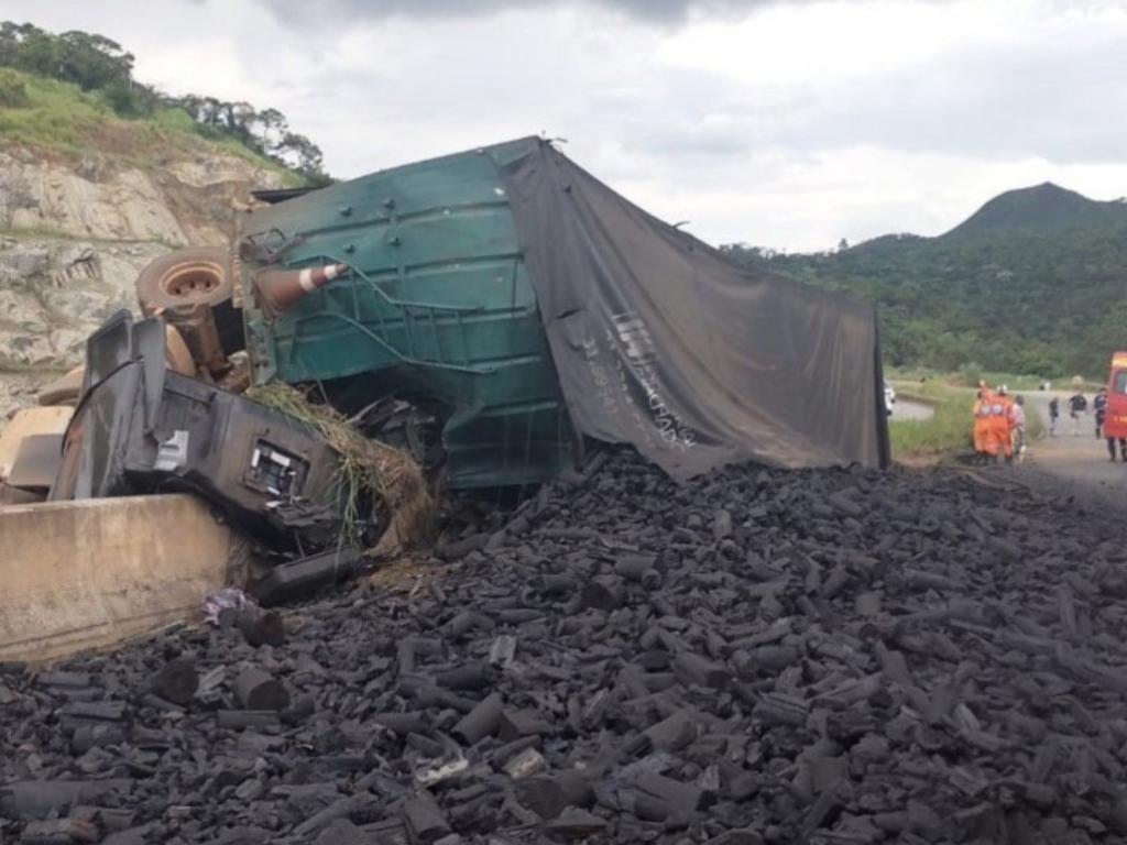 Acidente com carreta carregada com carvão deixa um morto na BR-381