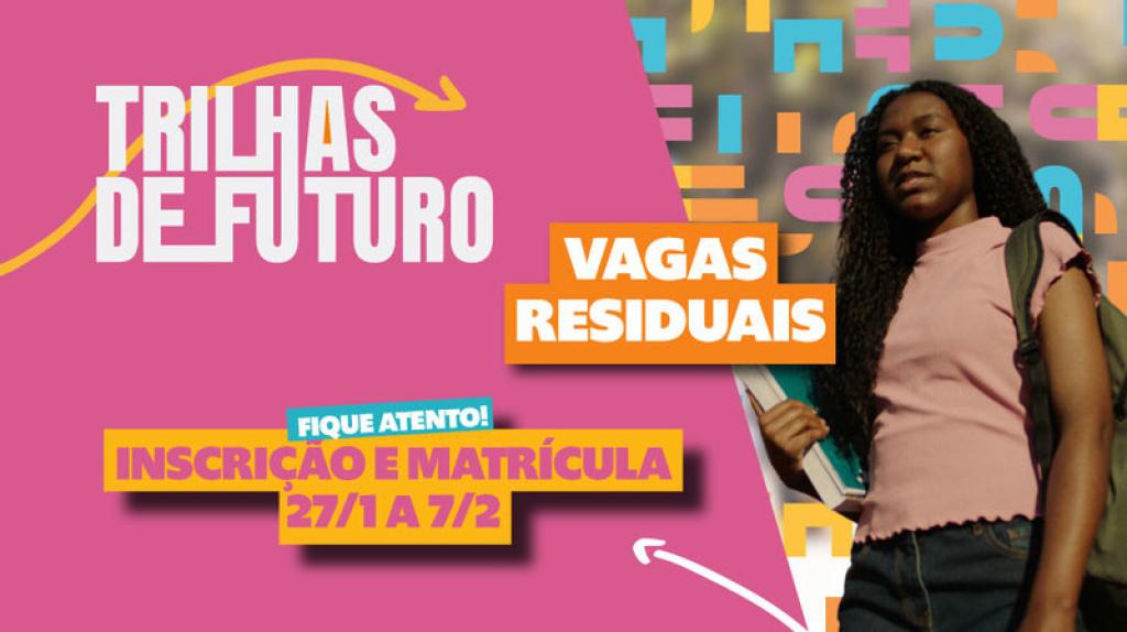 O projeto Trilhas de Futuro, do Governo de Minas, executado pela Secretaria de Estado de Educação de Minas Gerais (SEE/MG), está com inscrições abertas para as vagas residuais da 5ª edição, até o dia 7/2. Esta é uma nova oportunidade para os interessados em se qualificar para o mercado de trabalho através de cursos profissionalizantes gratuitos.